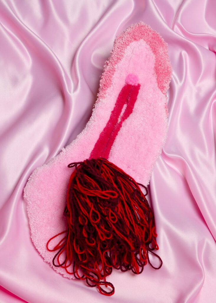 Visual communicator and artist Leonie Schepers creates playful activistic art with fabrics and handmade carpets. She showed her important work on menstruation and vulva freedom on the first edition of VFest 2022 and we are super happy to invite her back with a huge tactile installation we think you’ll love! Kutjeskracht is no stranger to us either: she’s been designing our festival shirts since day one. Joyful and shameless Kutjeskracht moves fearlessly through a patriarchal world, slapping it in the face with her fashion design and other bold creations. She’s working on several pieces for VFest including (of course!) a new festival shirt! Fem Fataal is a young artist who works with different mediums, researching shame and taboo. She’ll be creating a calm and soft interior for our quiet room, where you can chill and decompress.